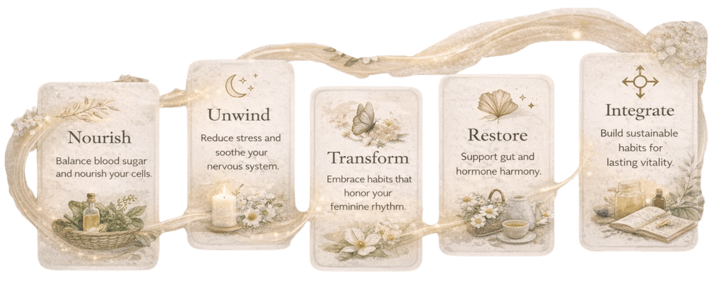 Through nourishment, awareness, and aligned action, you can feel powerful, peaceful, and radiant again.