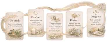 Our approach blends functional nutrition, modern science, and feminine wisdom to help women harmonize their hormones, rebalance their metabolism, and restore radiance from the inside out. Through personalized care programs, educational resources, and transformative retreats, NutriGoddess offers a holistic path to thriving in every phase of womanhood — from menstruation to menopause and beyond.